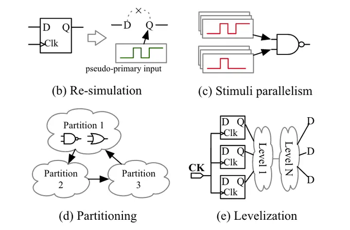 - Concentrated on optimizing simulation performance for circuits with low switching activity inputs which is more common in modern VLSI circuit analysis.
